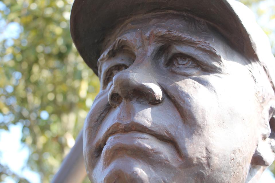 近くで見ると立派な顔立ちのベイブルース像。なぜ建っているかの